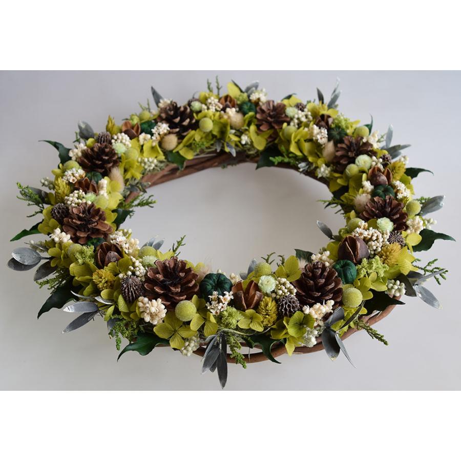 ドライフラワーリース 松ぼっくりとアイビーの葉 秋のリース 29cm プリザーブドフラワーリース専門店 愛彩祭 送料無料